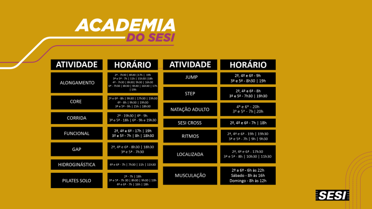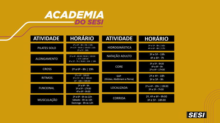 Para mais informações e, em caso de dúvida, contate a unidade da sua Academia SESI-SP!